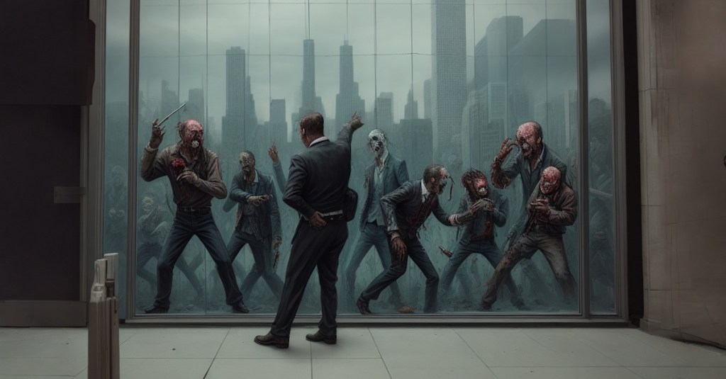 Yolanda DeYoung, a professor of zombie science at the University of Chicago, said that incidents like this are rare but do occur periodically under similar circumstances. “When you get a large group of the living dead out in the streets at night looking for their next meal, it’s not surprising that they’re going to be drawn to the big shiny lights of a glass building,” DeYoung said.